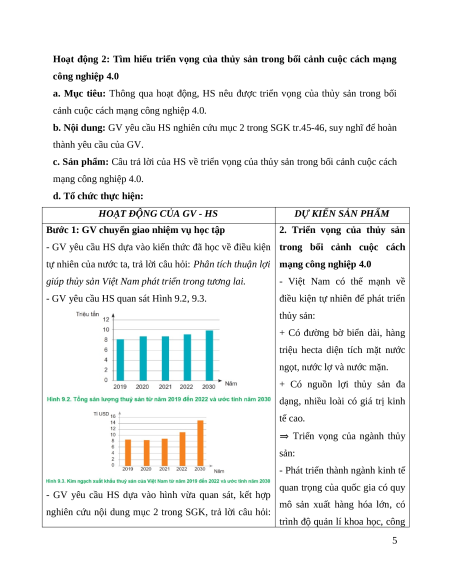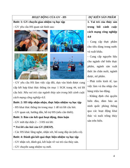 Giáo án Bài 9: Vai trò, triển vọng của thuỷ sản trong cách mạng công nghiệp 4.0 Công nghệ 12 Cánh diều