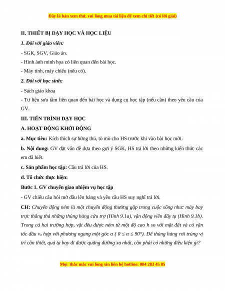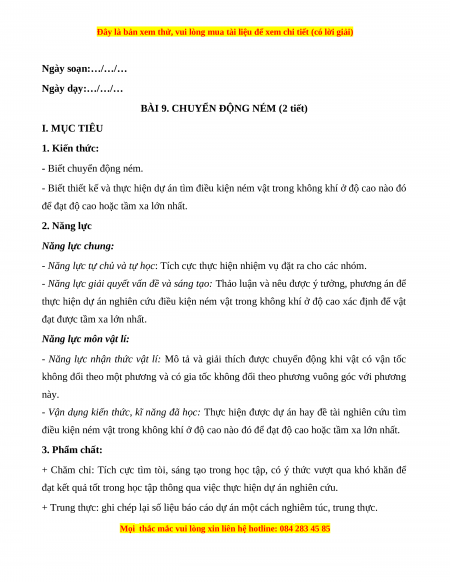 BÀI 9. CHUYỂN ĐỘNG NÉM (2 tiết) I. MỤC TIÊU 1. Kiến thức:
