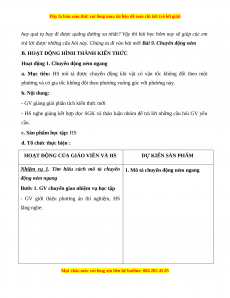 - Năng lực nhận thức vật lí: Mô tả và giải thích được chuyển động khi vật có vận tốc