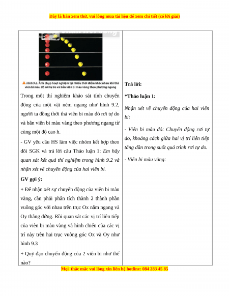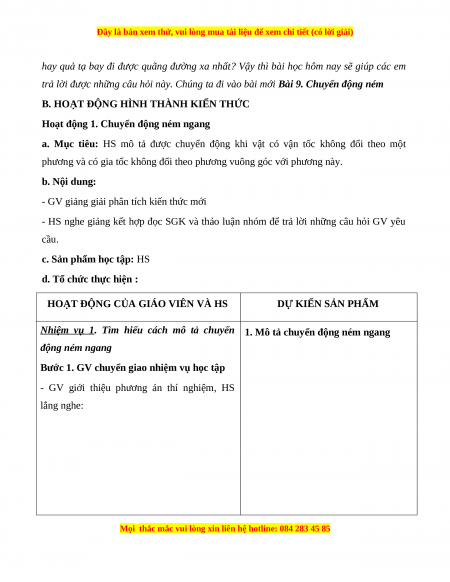 trả lời được những câu hỏi này. Chúng ta đi vào bài mới Bài 9. Chuyển động ném