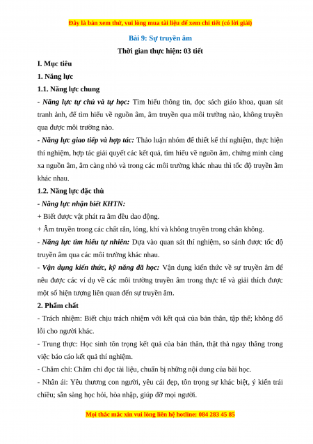Giáo án Bài 9 Vật lí 7 Cánh diều: Sự truyền âm