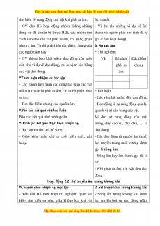 Hoạt động 2.2: Sự truyền âm trong không khí