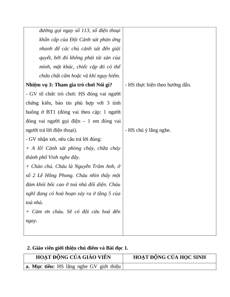 1. Trò chơi: Gọi cho ai? Nói gì?