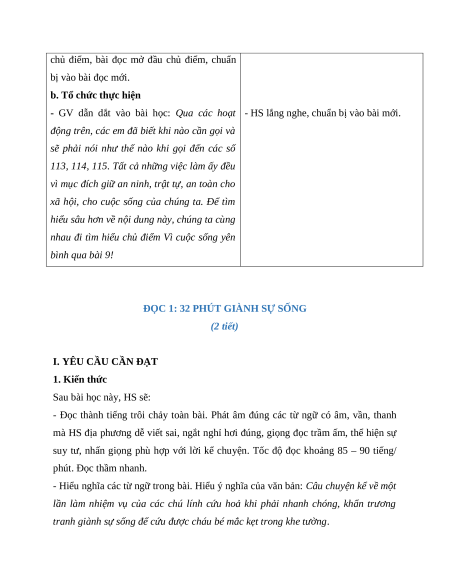 ĐỌC 1: 32 PHÚT GIÀNH SỰ SỐNG (2 tiết)