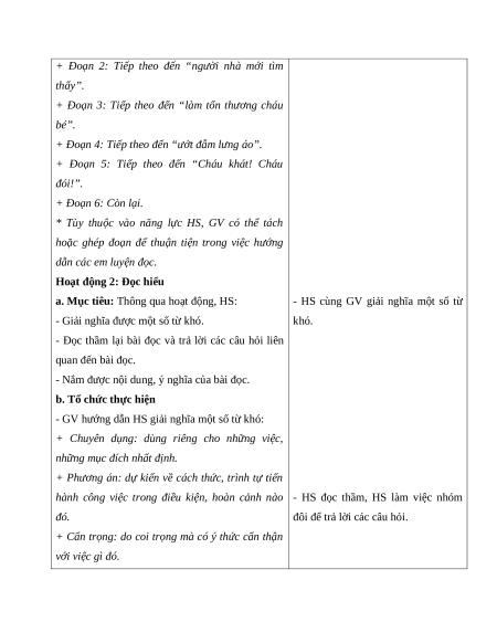 - Hiểu nghĩa các từ ngữ trong bài. Hiểu ý nghĩa của văn bản: Câu chuyện kể về một