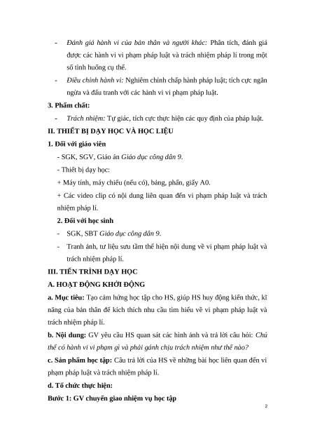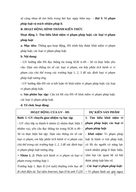 Giáo án Bài 9: Vi phạm pháp luật và trách nhiệm pháp lí Giáo dục công dân 9 Chân trời sáng tạo