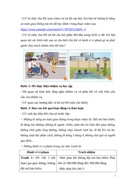 + Những kĩ năng an toàn giao thông trong đoạn video là: Đội mũ bảo hiểm,