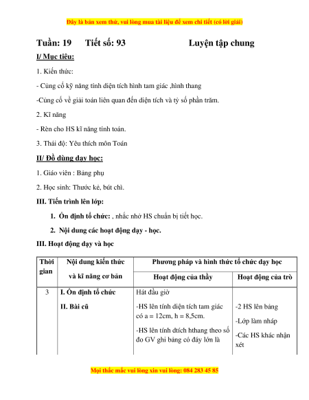 Giáo án Bài 93 Toán lớp 5: Luyện tập chung (Trang 95)