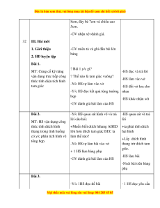 8cm, đáy bé 7cm và chiều cao 5cm. -GV nhận xét đánh giá. 32 III. Bài mới 1. Giới thiệu