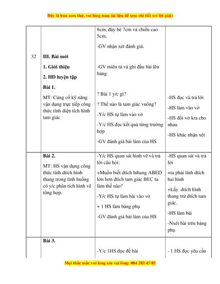 - Củng cố kỹ năng tính diện tích hình tam giác ,hình thang