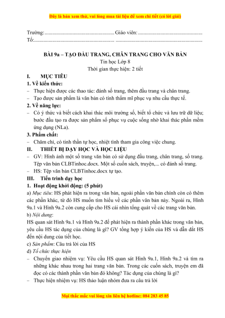 + Quan sát hình 9a.2 và các tệp văn bản có chứa đầu trang và chân trang