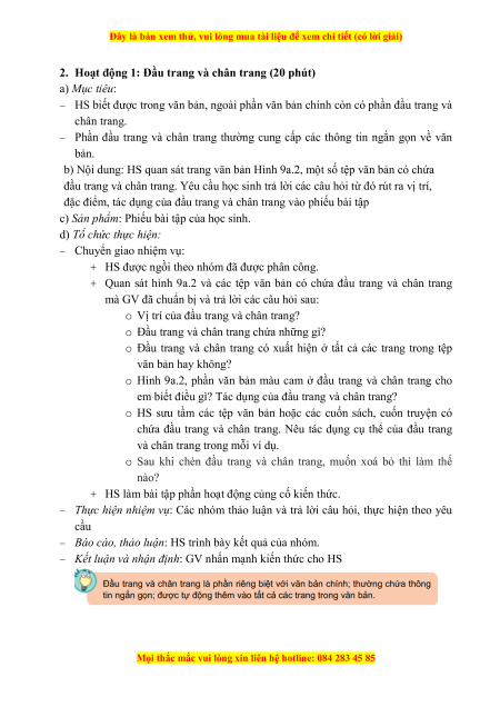 2. Hoạt động 1: Đầu trang và chân trang (20 phút) a) Mục tiêu: