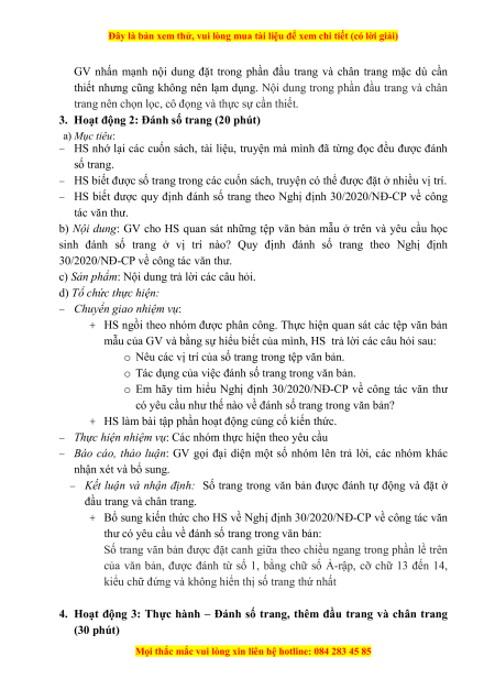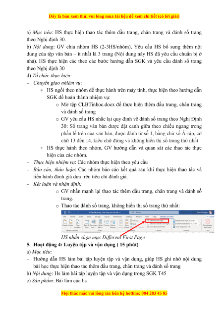 3. Hoạt động 2: Đánh số trang (20 phút) a) Mục tiêu: