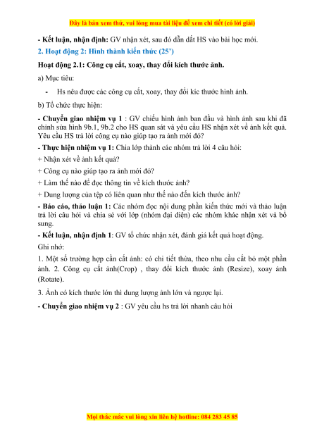 Hoạt động 2.1: Công cụ cắt, xoay, thay đổi kích thước ảnh. a) Mục tiêu: