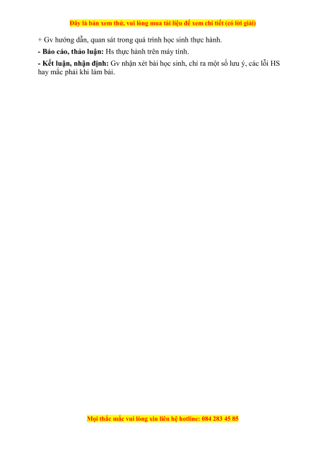 - Báo cáo, thảo luận: Hs thực hành trên máy tính.
