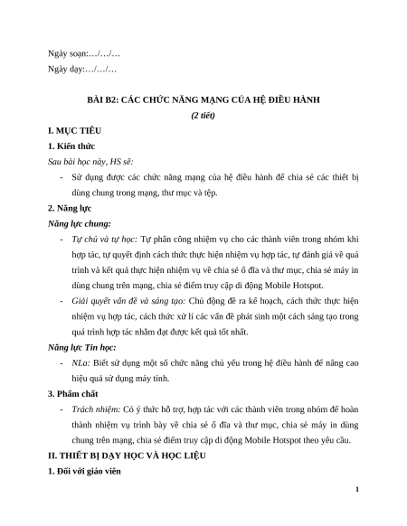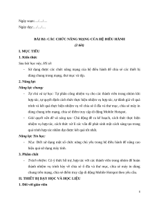 BÀI B2: CÁC CHỨC NĂNG MẠNG CỦA HỆ ĐIỀU HÀNH (2 tiết) I. MỤC TIÊU 1. Kiến thức