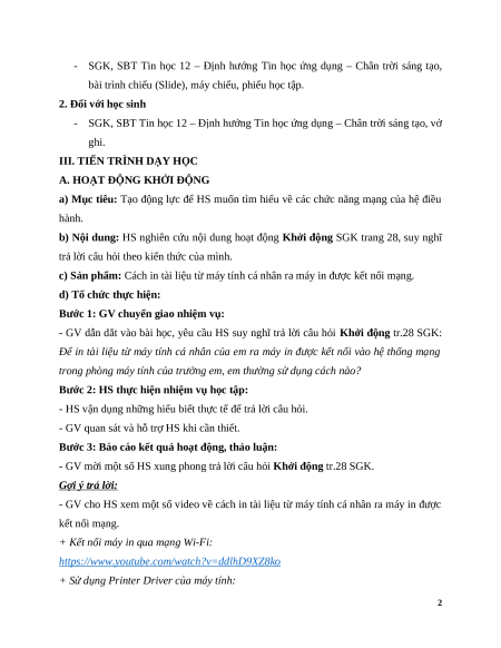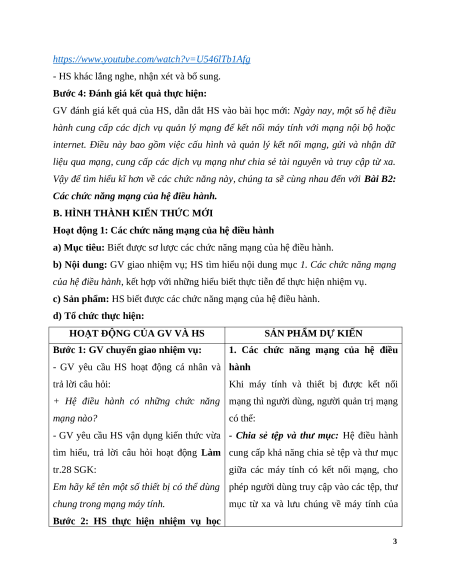Giáo án Bài B2: Các chức năng mạng của hệ điều hành Tin học 12 Chân trời sáng tạo