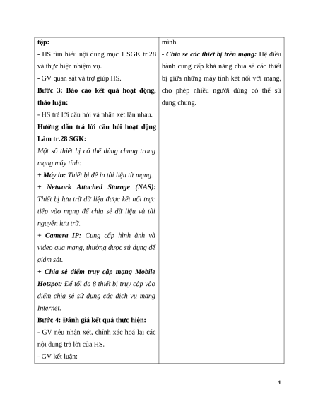- HS tìm hiểu nội dung mục 1 SGK tr.28 - Chia sẻ các thiết bị trên mạng: Hệ điều