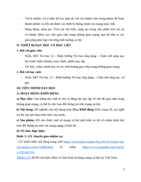 II. THIẾT BỊ DẠY HỌC VÀ HỌC LIỆU