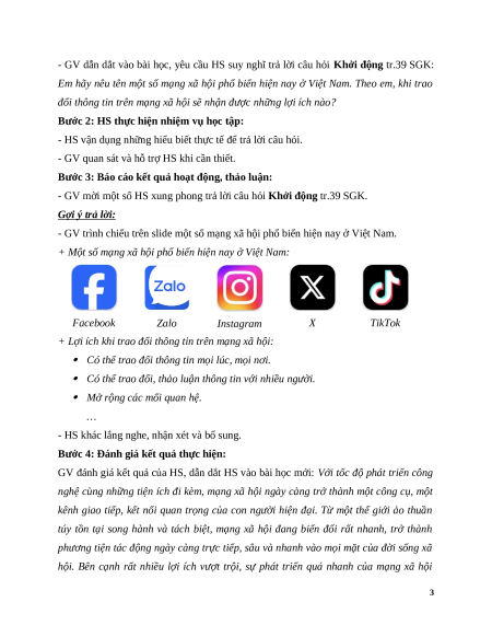 JBE&t=57s để HS tìm hiểu thêm về tình hình sử dụng mạng xã hội tại Việt Nam. 2