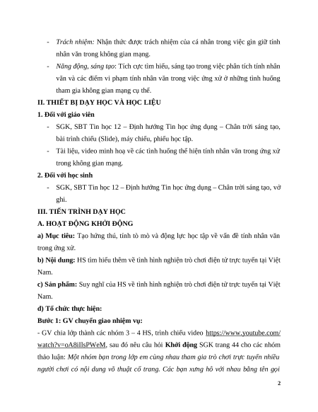 - Phân tích được tính nhân văn trong ứng xử ở một số tình huống tham gia không gian mạng. 2. Năng lực