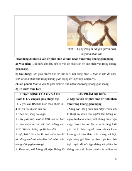 c) Sản phẩm: Tính nhân văn trong không gian mạng.