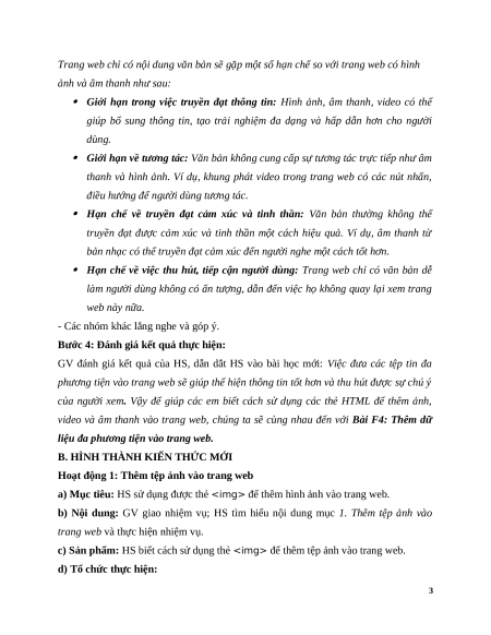 BÀI F4: THÊM DỮ LIỆU ĐA PHƯƠNG TIỆN VÀO TRANG WEB (2 tiết) I. MỤC TIÊU 1. Kiến thức