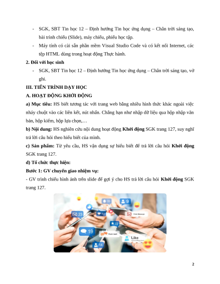 II. THIẾT BỊ DẠY HỌC VÀ HỌC LIỆU