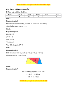 ậ hình bên có: 3 hình t gi ứ ác. Câu 4. Đáp án đúng là: A Đ dài ộ đư ng ờ g p khúc ấ GEBCD là: 3 + 2 + 3 + 2 = 10 cm Đ i ổ 10 cm = 1 dm
