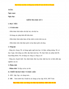 TUẦN: Ngày soạn: Ngày dạy: KIỂM TRA HỌC KỲ I I. MỤC TIÊU