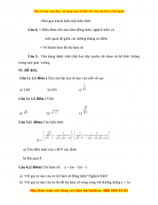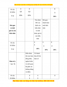 Số câu 3 3 6 Số điểm 1,5 1,5 3 Tỉ lệ 15% 15% 30% Tìm được Rút gọn ĐK xác thành thảo Rút gọn định của một biểu và tính biểu thức thức giá trị của và tính biểu thức được giá trị của biểu thức Số câu 1 1 2 Số điểm 1 1 2 Tỉ lệ 10% 10% 20% Hiểu được Vẽ thành