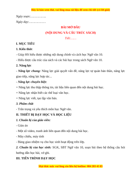- Hiểu được câu trúc của sách và các bài học trong sách Ngữ văn 10. 2. Năng lực