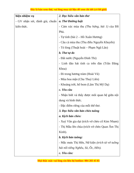 - GV nhận xét, đánh giá, chuẩn a. Thơ Đường luật kiến thức.