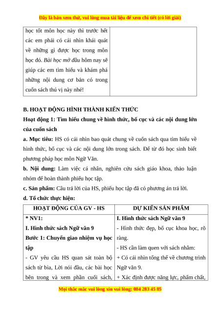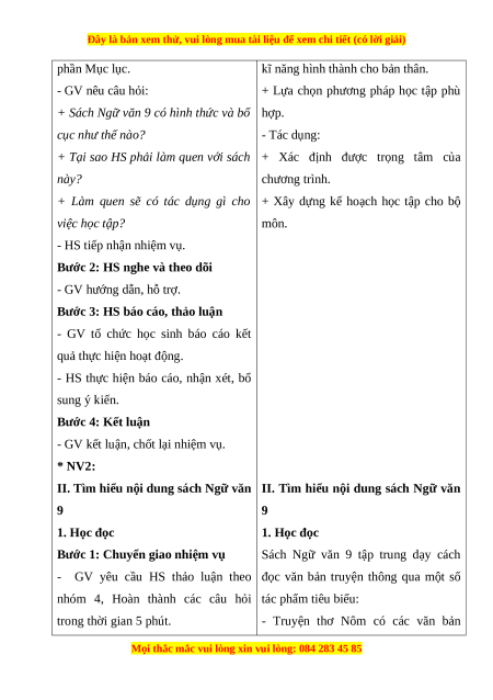 - HS hiểu được những nội dung chính của sách Ngữ văn 9.