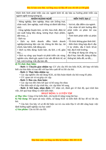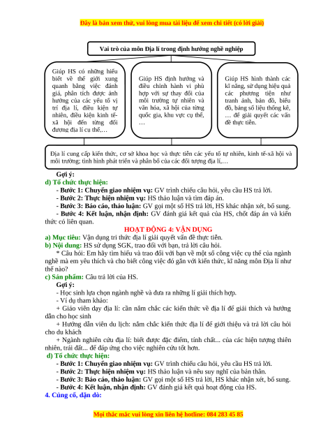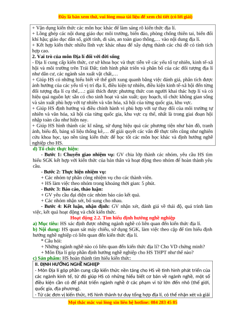 nghề nghiệp của HS. Do đó, các em được học các kiến thức cốt lõi và các chuyên đề Địa