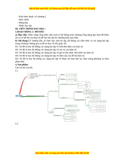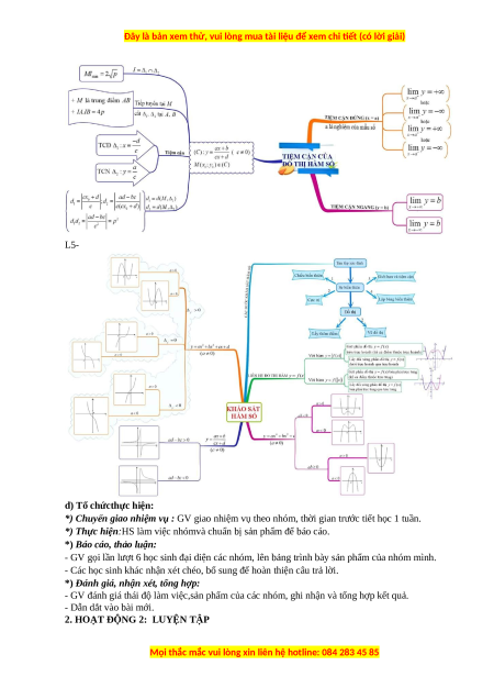 H5- Sơ đồ tư duy hệ thống các dạng bài tập về khảo sát hàm bậc ba, hàm trùng phương và hàm phân thức. c) Sản phẩm: Câu trả lời của HS L1- L2-