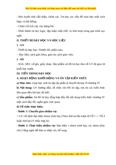 Ộ G VÀ ÔN TẬP KI N Ế TH C Ứ a) M c t ụ iêu: Giúp h c s ọ inh ôn t p l ậ i ạ ph n l ầ ý thuy t ế đã h c ọ ch ở ư ng ơ IV b) N i ộ dung: GV hư ng ớ d n, ẫ tổ ch c ứ cho HS ôn t p, ậ tìm tòi các ki n ế th c ứ liên quan đ n bài ế h c ọ đã bi t ế . c) S n ả ph m