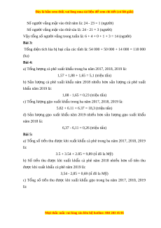 5.82 + 6.11 + 6.37 = 18,3 (tri u t ệ ấn) d) S n ả lư ng ợ g o ạ xu t ấ kh u ẩ năm 2019 nhi u ề h n ơ s n ả lư ng ợ g o ạ xu t ấ kh u ẩ năm 2018 là: 6,37 - 6,11 = 0,26 (tri u t ệ n) ấ Bài 5: a) T ng ổ số ti n ề thu đư c ợ khi xu t ấ kh u