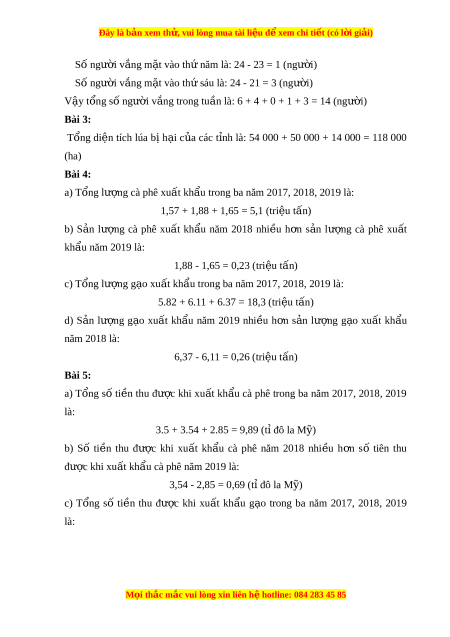 Đây là bản xem th , vu ử i lòng mua tài li u ệ đ xe ể m chi ti t ế (có l i ờ gi i ả ) Số ngư i ờ v ng m ắ t ặ vào th năm ứ là: 24 - 23 = 1 (ngư i ờ ) Số ngư i ờ v ng m ắ t ặ vào th s