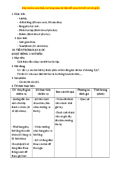 4. Tổ chức thực hiện GV chuyển giao HS thực hiện Phương án Thời lượng Báo cáo kết quả nhiệm vụ nhiệm vụ đánh giá (phút) - Hướng dẫn học - HS tiến hành - Nhóm đủ thành - Quan sát sinh chia lớp chia nhóm, bầu viên nhanh nhất thành 4 nhóm (8- nhóm trưởng và giơ tay. 10 HS/nhóm) thư ký. - Danh sách thành viên có ghi đầy đủ nhóm trưởng, thư ký. - Phát bảng phụ, - Nhóm trưởng bút lông cho mỗi nhận bảng phụ và