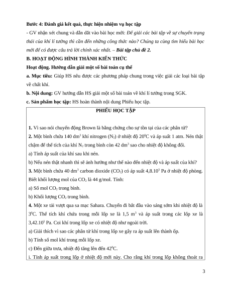 b. Nội dung: GV hướng dẫn HS giải một số bài toán về khí lí tưởng trong SGK.