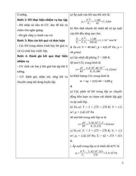 i. Tính áp suất trong lốp ở nhiệt độ mới này. Cho rằng khí trong lốp không thoát ra 3