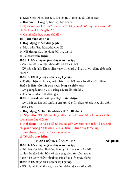 1. Giáo viên: Phiếu học tập, câu hỏi trắc nghiệm, bài tập tự luận