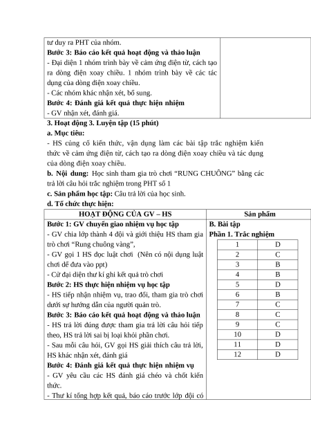 ra dòng điện xoay chiều. 1 nhóm trình bày về các tác