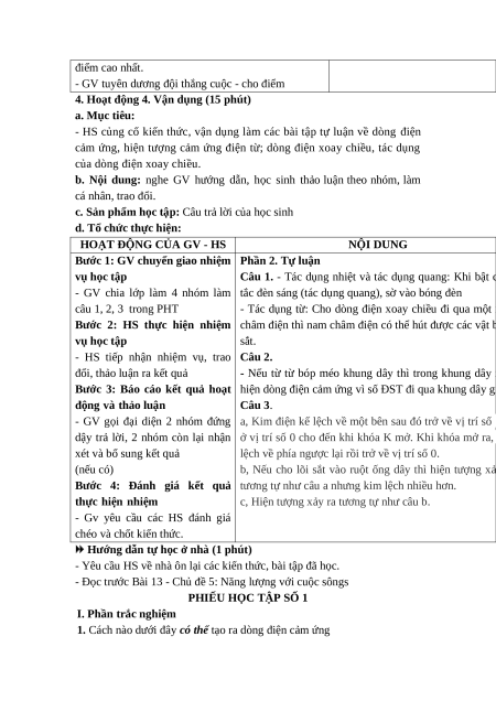 quan đến cảm ứng điện từ và dòng điện xoay chiều.