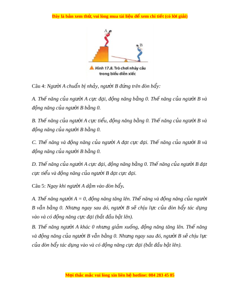 Ch n đáp án đúng cho ọ câu 4,5. Chỉ ra các d ng ạ năng lư ng ợ c a ủ hai v n ậ đ ng ộ viên xi c ế khi th c ự hiên trò ch i ơ nh y c ả ầu (Hình 17.8) vào lúc: M i