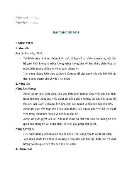 đặt ra xoay quanh chủ đề vật lí hạt nhân. 2. Năng lực