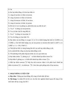 - HS nhận tài liệu từ GV, đọc đề bài và hơn hạt nhân 188O. chăm chú nghe giảng. 5.