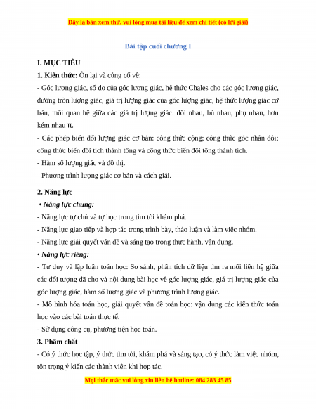 Bài tập cuối chương I I. MỤC TIÊU