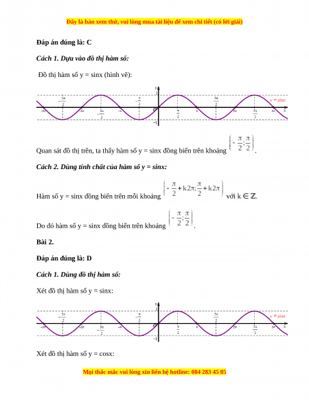 Do đó hàm số y = sinx đồng biến trên khoảng . Bài 2. Đáp án đúng là: D